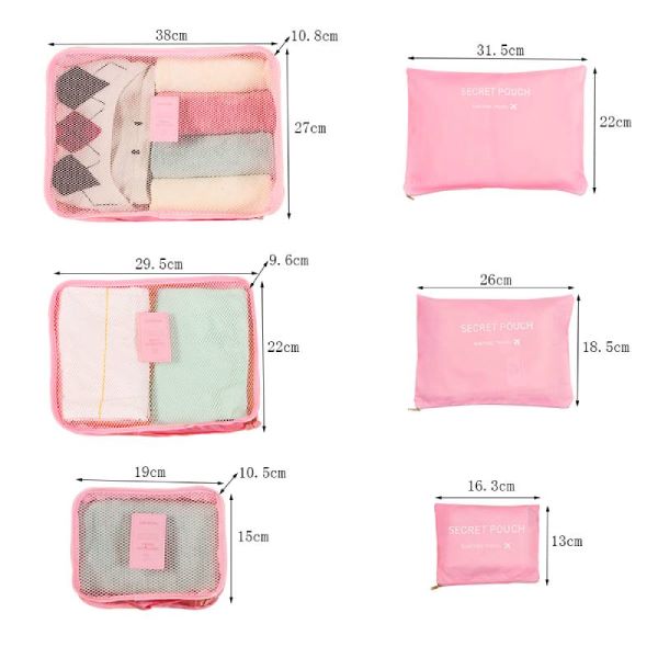 Setul nostru de organizatori include 6 genți realizate din material de nailon impermeabil.