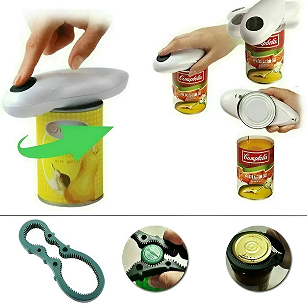 Deschideți fără efort orice conservă cu o simplă apăsare de buton!🥫 Perfect pentru toate dimensiunile de conserve, acest deschizător electric oferă margini netede și sigure. Acest set compact și portabil include un desfăcător automat pentru conserve și un desfăcător manual pentru sticle. Sigur și perfect pentru picnicuri și bucătării deopotrivă.