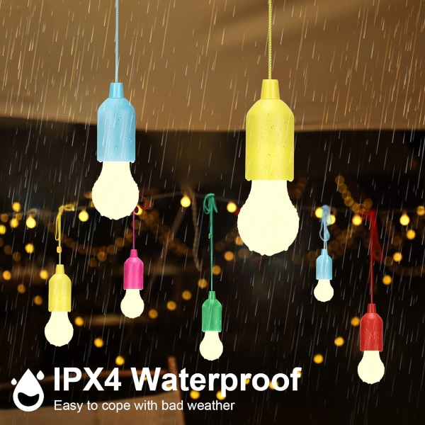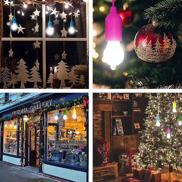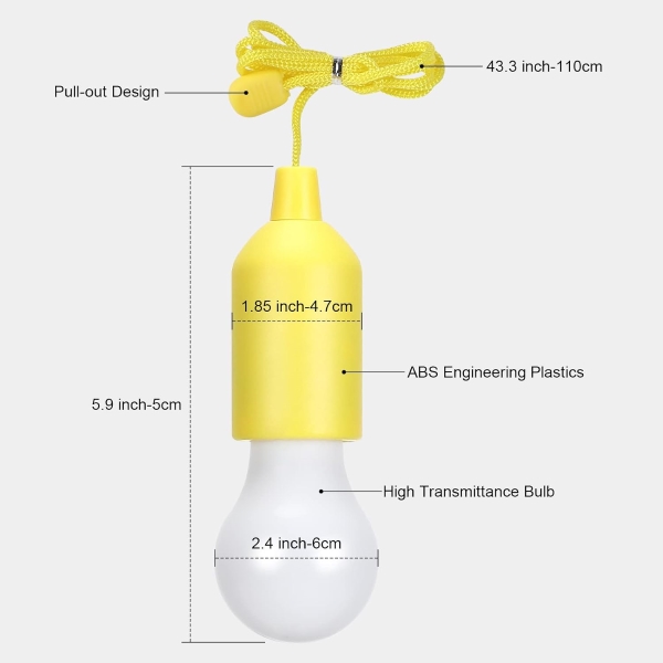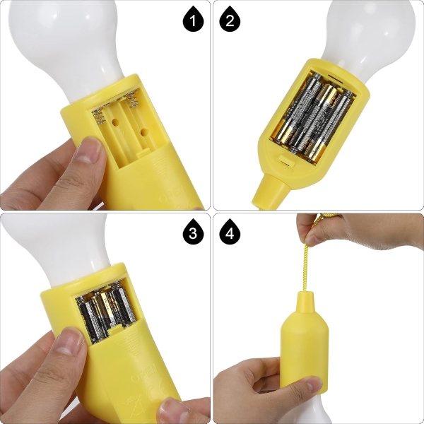 4 becuri cu lumini LED cu fir pentru agățare, concepute pentru utilizare atât în interior, cât și în exterior. Aceste becuri sunt alimentate cu baterii și dispun de un cordon de tragere convenabil conectat la comutatorul becului. Perfecte pentru iluminarea și decorarea spațiilor precum dulapuri, garaje, curți, verande și scări, aceste becuri cu frânghie sunt ideale pentru orice mediu care necesită iluminare suplimentară.