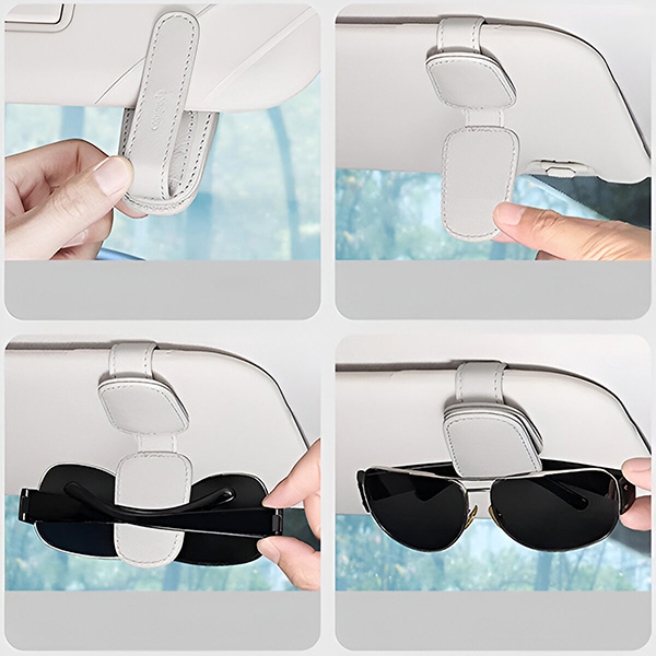 Doar fixați clema pe parasolar pentru a vă organiza eficient ochelarii de soare, eliminând orice grijă legată de pierderea sau încurcarea acestora.