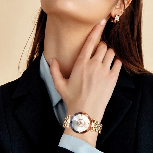 Mișcare de precizie cu cuarț: Alimentat de o unitate electronică și o mișcare de cuarț, SPARKLELIGHT asigură nu doar o cronometrare precisă, ci și o sincronizare grațioasă a stilului și a funcției. Fiecare privire aruncată la încheietura mâinii tale devine un moment de lux rafinat.