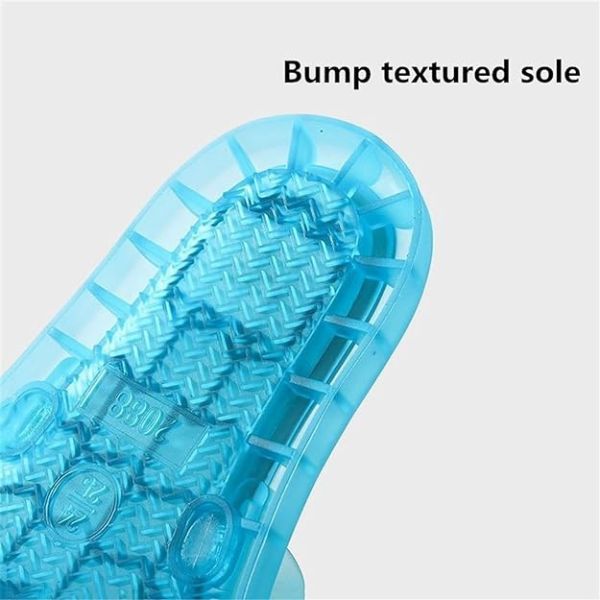 Siguranța este pe primul loc! Șlapii noștri au o talpă cu textură concavă și convexă special concepută pentru a preveni alunecările și căderile pe suprafețe umede. Copiii pot alerga, sări și se pot juca cu încredere, știind că picioarele lor sunt în siguranță și protejate de alunecări pe marginea piscinei sau pe iarba udă.