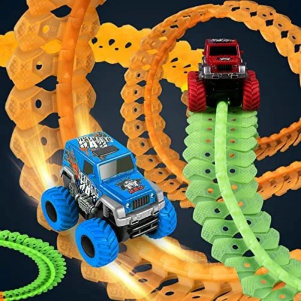 Construiți o pistă personalizată și vibrantă de orice lungime dorită, cu bucle de 360°, secțiuni drepte sau curbe, aranjamente verticale sau orizontale și nenumărate alte posibilități!