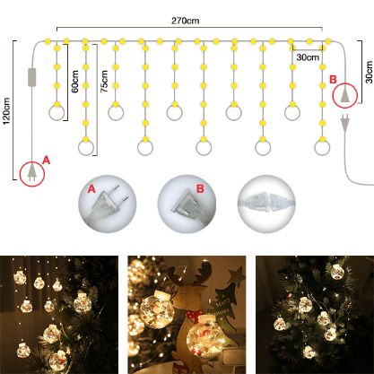 Globurile sunt înșirate pe un fir ca o perdea. Când le întindeți, creați un adevărat basm de Crăciun.