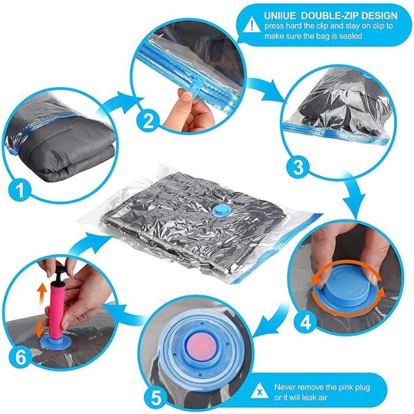 Acești saci pentru depozitarea în vid sunt perfecți pentru vacanțe deoarece puteți îndepărta ușor aerul manual, iar dimensiunea lor compactă îi fac ușor de transportat.