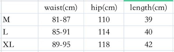 Mărimea: M – Talie 81-87 cm – Șolduri 110 cm – Lungime 39 cm