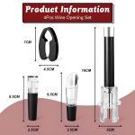 Acest set 4-în-1 include un deschizător cu pompă de aer, un tăietor de folie, un aerator pentru turnare și un dop de vid pentru o experiență perfectă a vinului.