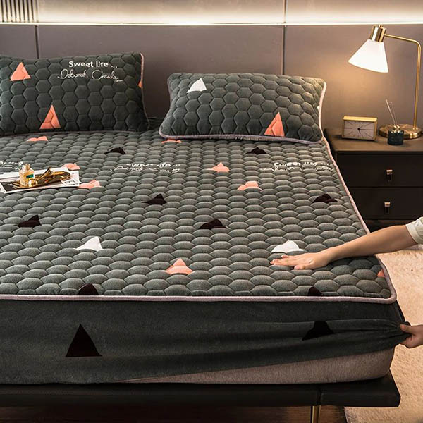 Îmbunătățiți decorul dormitorului dvs. cu modele elegante. Alege dintre gri-verde cu triunghiuri sau roz cu inimi pentru a se potrivi cu stilul tău personal.