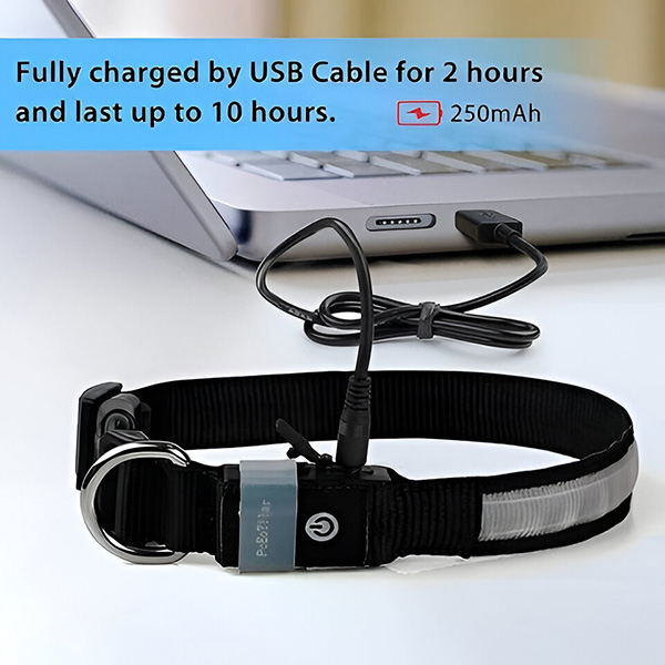Nu mai înlocuiți bateriile. Această zgardă se încarcă prin cablu USB (Inclus), oferind până la 10 ore de lumină după o încărcare de 2 ore. O puteți încărca prin telefon, laptop, baterie externă sau alte surse.