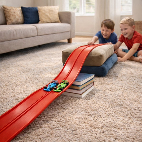 Copiii pot modela pista folosind obiecte de zi cu zi pentru a crea sărituri, tuneluri și bucle, stimulând imaginația și capacitatea de rezolvare a problemelor în locul jocului repetitiv. Îi menține concentrați ore întregi fără ecrane.