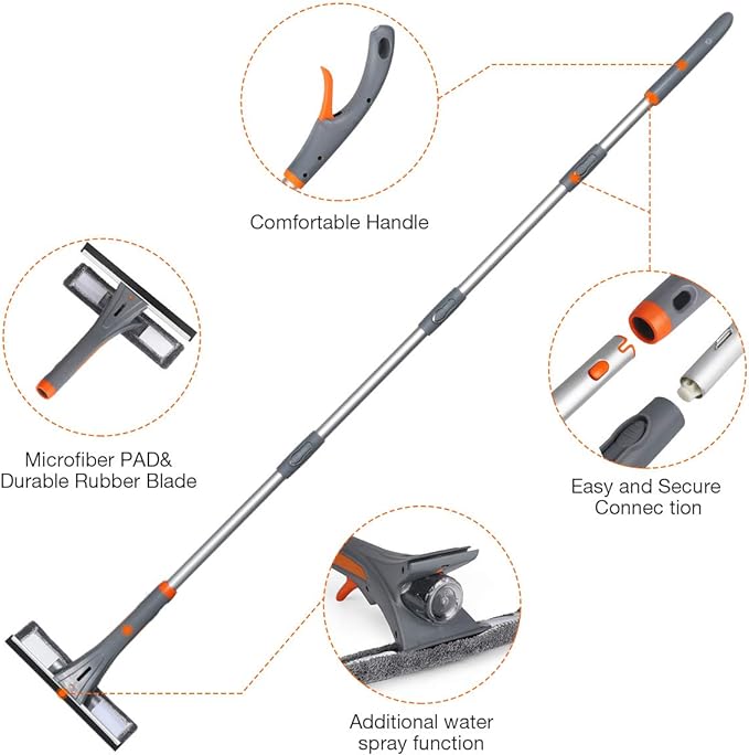 📏 Cu ajutorul tijei extensibile puteți ajunge chiar și la ferestrele exterioare înalte